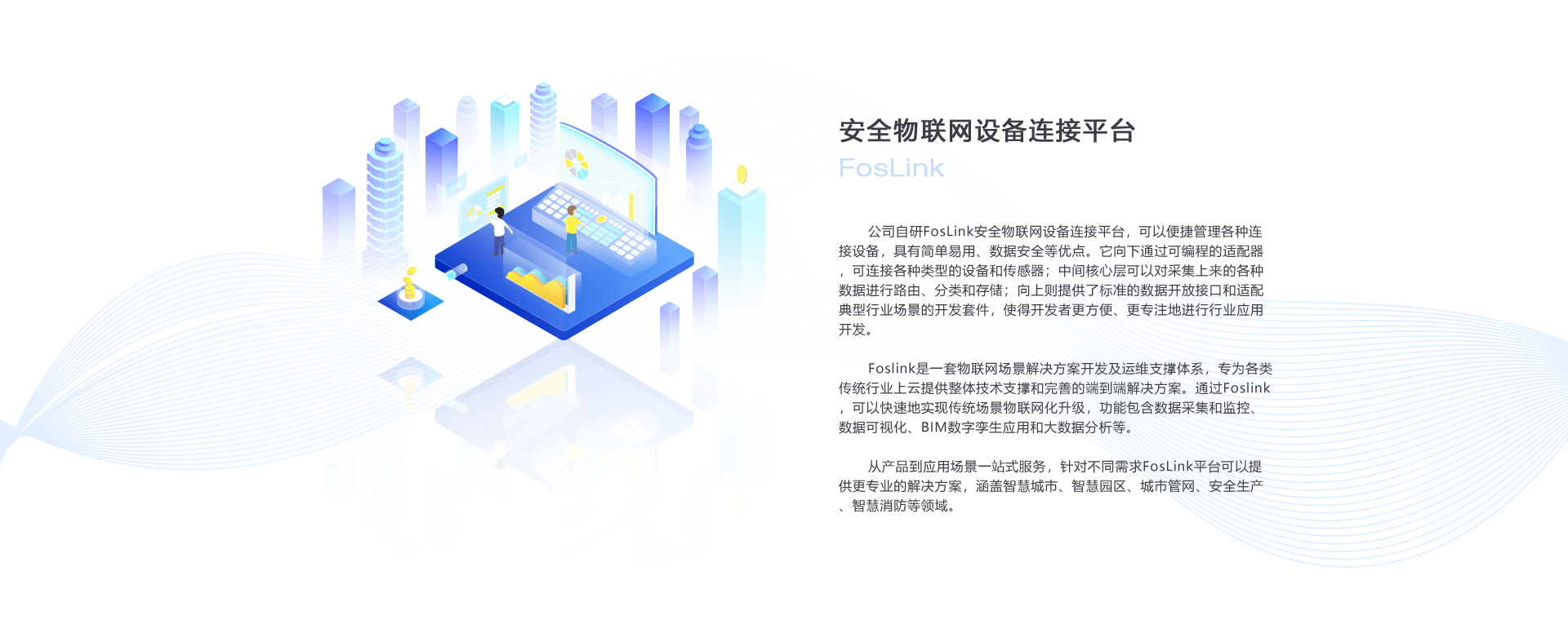 Foslink是一套物聯(lián)網(wǎng)場景解決方案開發(fā)及運(yùn)維支撐體系,專為各類傳統(tǒng)行業(yè)上云提供整體技術(shù)支撐和完善的端到端解決方案。通過Foslink,可以快速地實(shí)現(xiàn)傳統(tǒng)場景物聯(lián)網(wǎng)化升級,功能包含數(shù)據(jù)采集和監(jiān)控、數(shù)據(jù)可視化、BIM數(shù)字孿生應(yīng)用和大數(shù)據(jù)分析等。